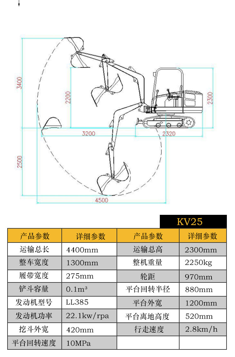 整機重量:2250kg履帶寬度:275mm發動機功率:22.1kw