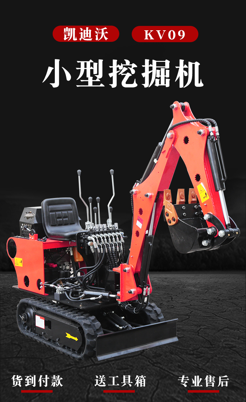 09小型挖掘機噪音小、排放低、油耗少、維修方便,配置高精準的綜合儀表監控系統,實時監控設備各項性能參數,性能穩定,工礦適應力強.