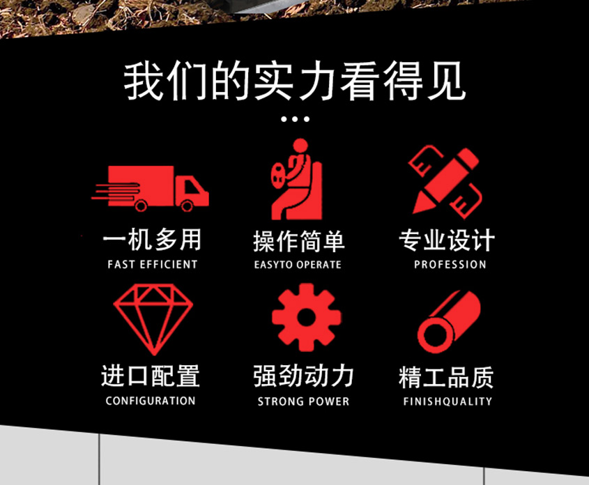 整車重量:950KG標準鏟斗容量:0.025m3額定功率:8.6kw