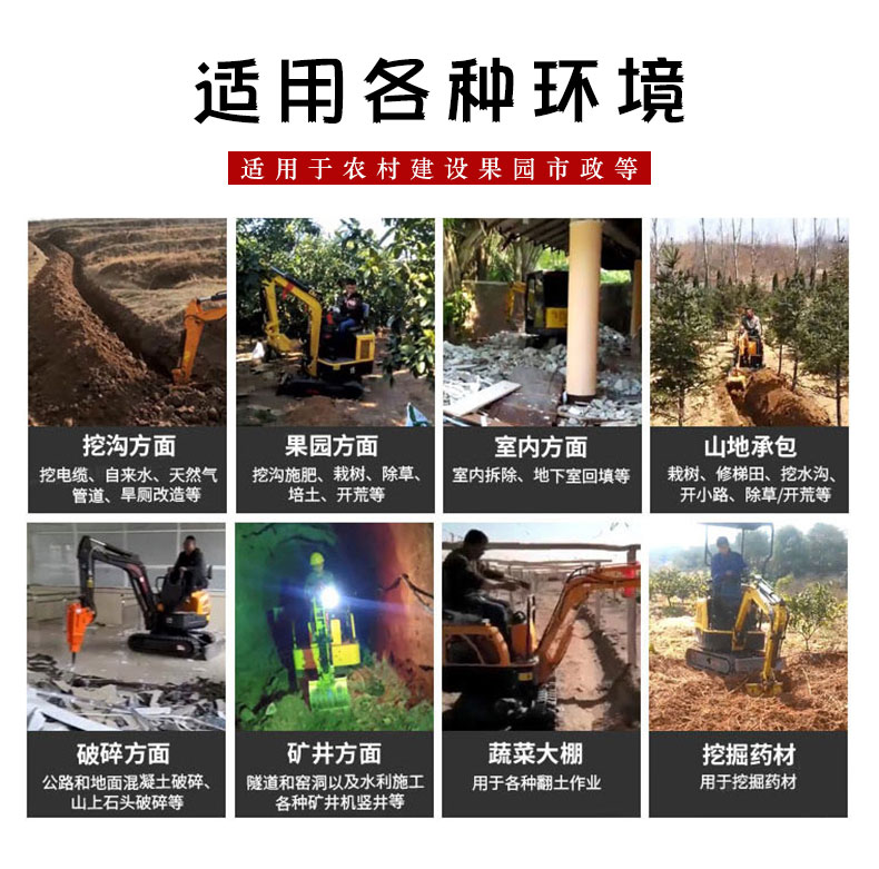 3、操作簡單、小巧靈活、運輸方便、能在狹小場地作業,特別適合在果園如獼猴桃園、葡萄園、橘子園挖溝、施肥、除草等。