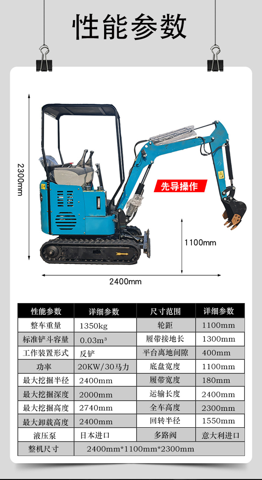 整車重量:1150KG標準鏟斗容量:0.04m3額定功率/轉速:常柴20/洋馬14.6